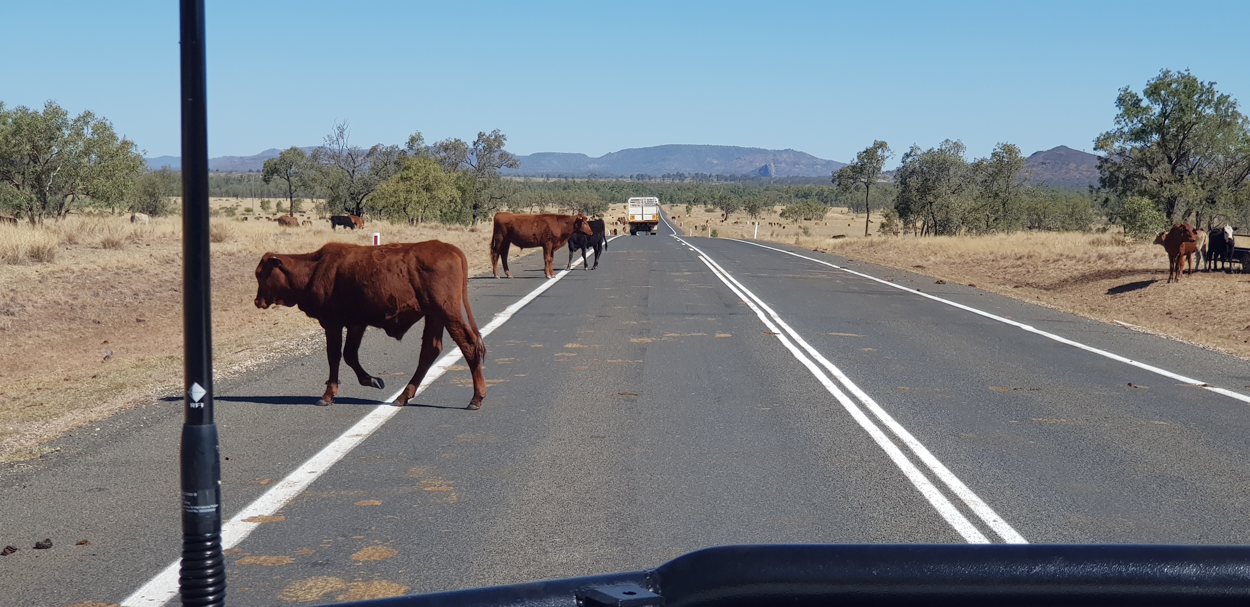 There were quite a few animal sitings along the road on the way, both native and domestic including an emu and her chicks, a kangaroo and her joey and plenty of cattle crossing the road where there are no fences.