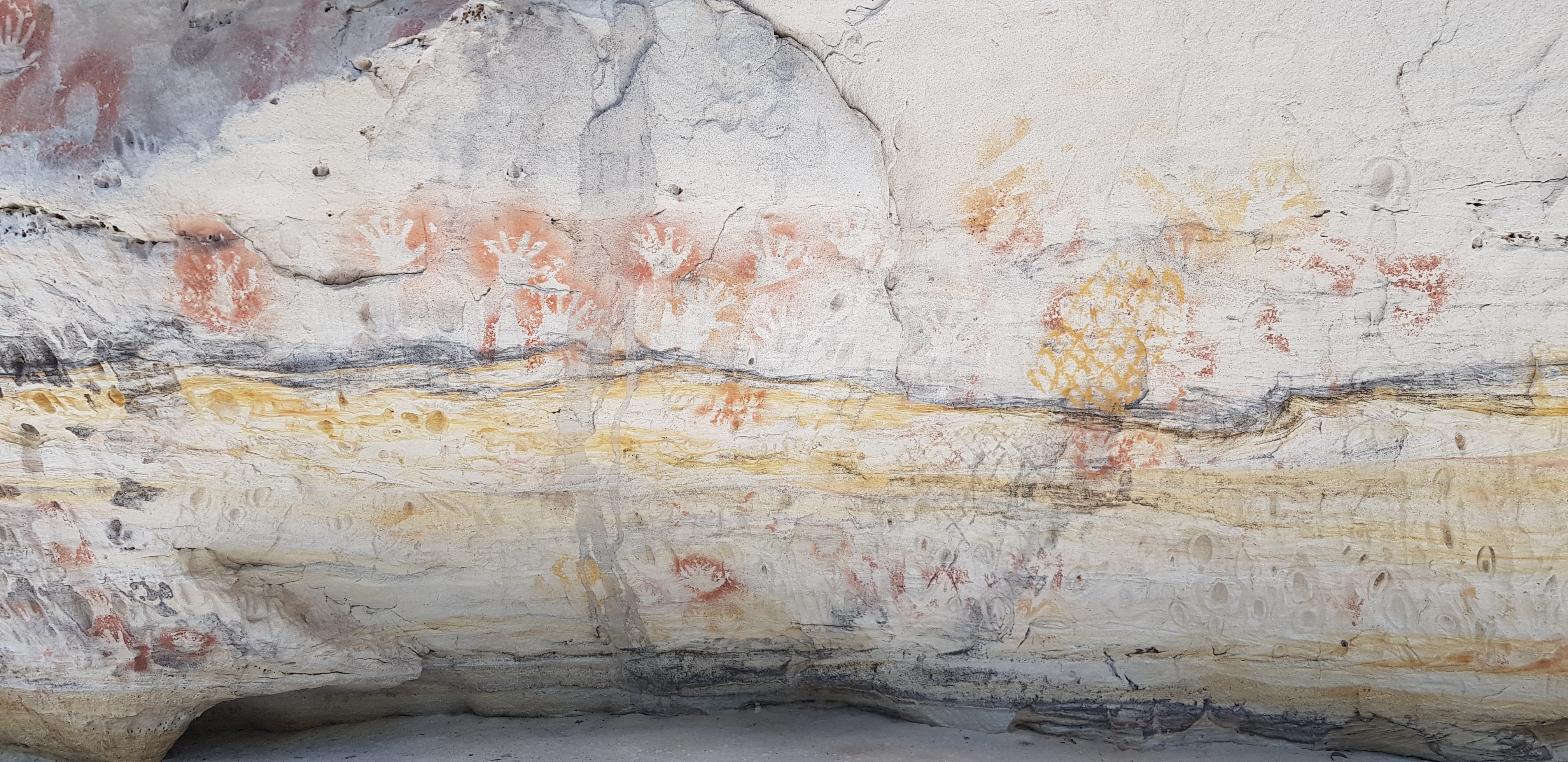 The side caverns we went into were the Moss Garden with its beautiful hanging greenery, the Art Gallery with its indigenous art sharing the stories of their ancestors, and the Cathedral Cave with its huge overhanging rock and art.  There were at least 5 or 6 more side caverns, but my feet and hips had had enough! We’ll be back one day to see the rest.