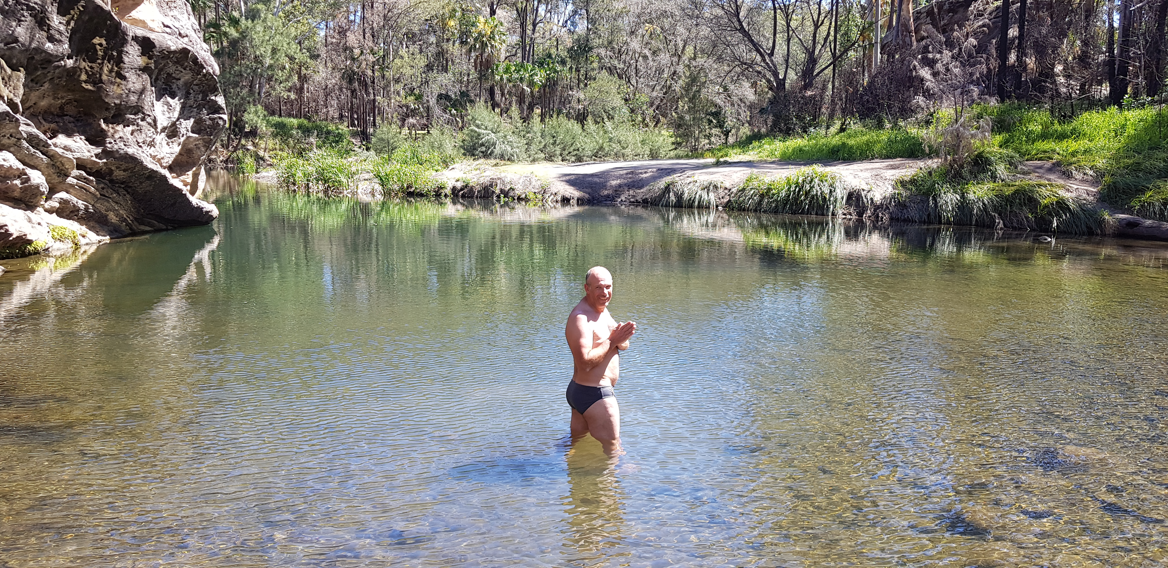 The walk back was quicker than going in, but I was so glad to see the motorhome at the end. I spent the evening massaging my aching muscles. The next day we went to the Rockpool, just outside the Gorge for a swim. Well actually, for a quick dip. It was cooold!