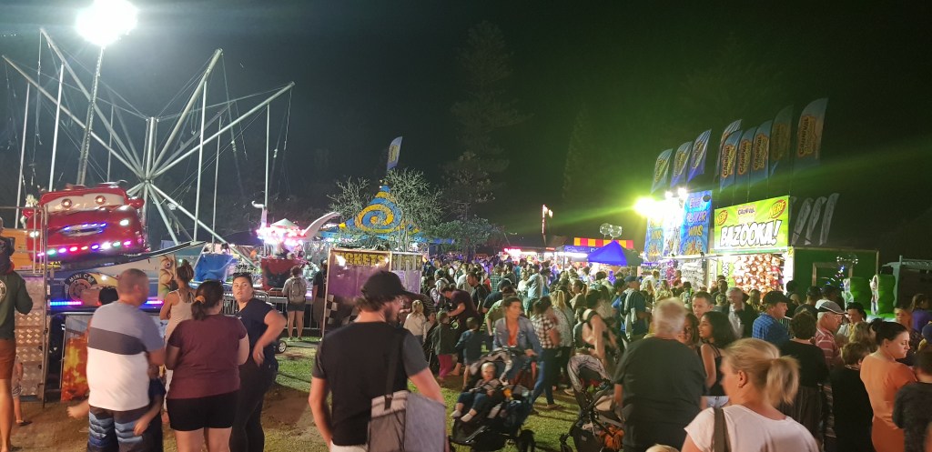 The festival markets were the best we’ve been to in a while with live music, plenty of food options, including a Russian food van with cabbage rolls, pelmeni, vareniki and Napoleon cake, as well as endless art and craft stalls. There was a carnival with sideshow alley and rides on Friday and Saturday night, as well as fantastic fireworks on the vintage airfield to top it all off. We ended up staying Saturday night as well but got caught stealth-camping (otherwise known as free camping but specifically in residential areas) on the road heading into the Manning Entrance State Park next to the airfield.