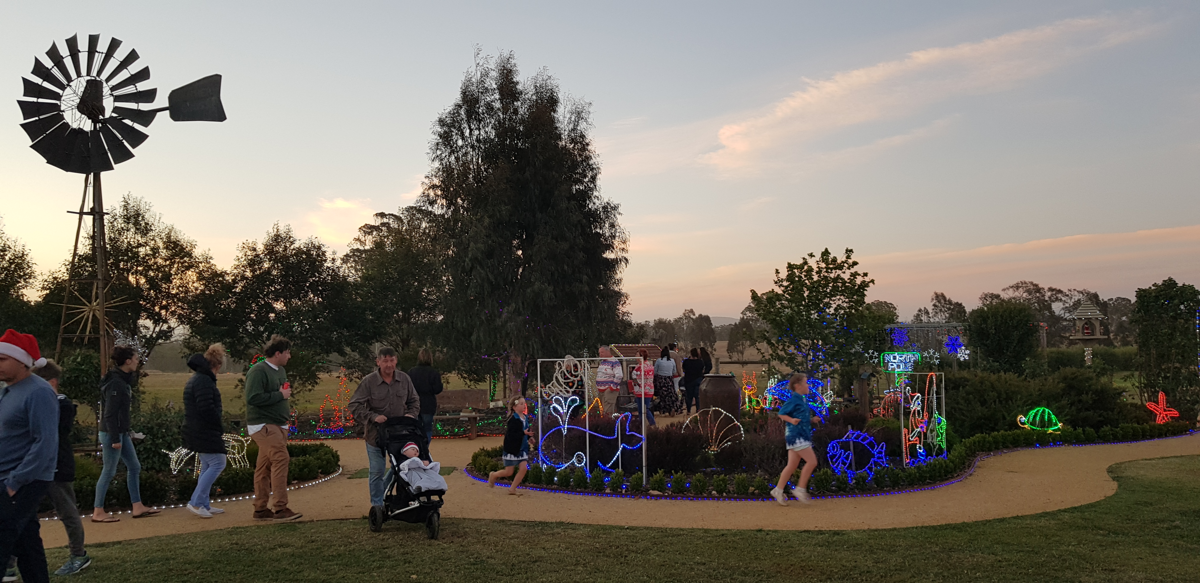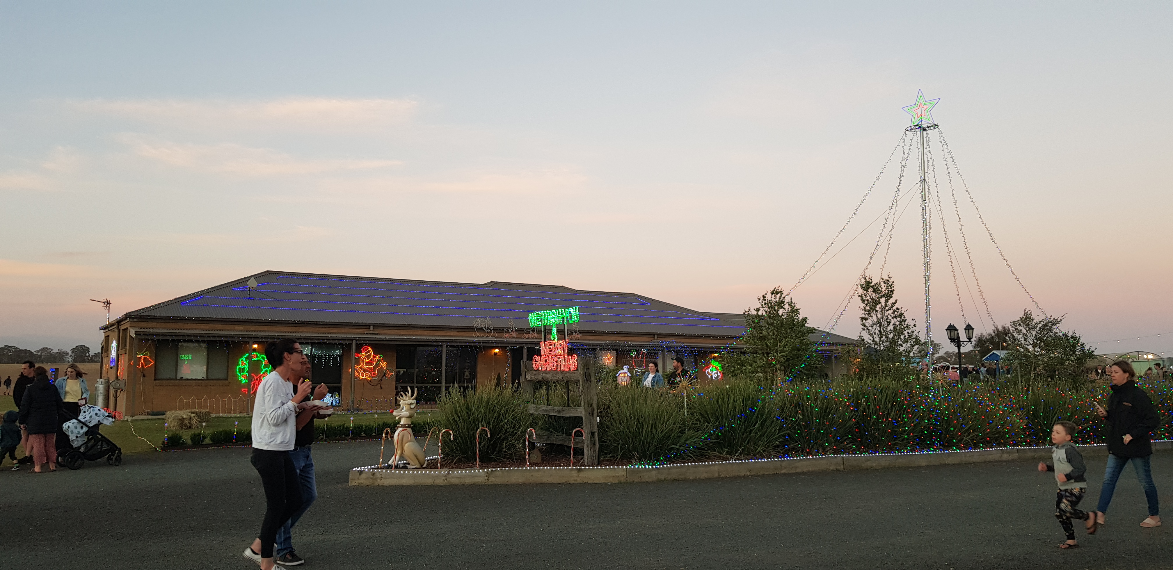 Just outside of the town, at a private property, there was a food truck festival and Christmas lights display supporting the Beyond Blue charity. Hundreds of the locals turned up, but it was really windy and cold, so after having some dinner, and once the light had faded enough for the lights to illuminate and we could take photos, we left. We went back to the Maffra car museum as they allow people to camp overnight.