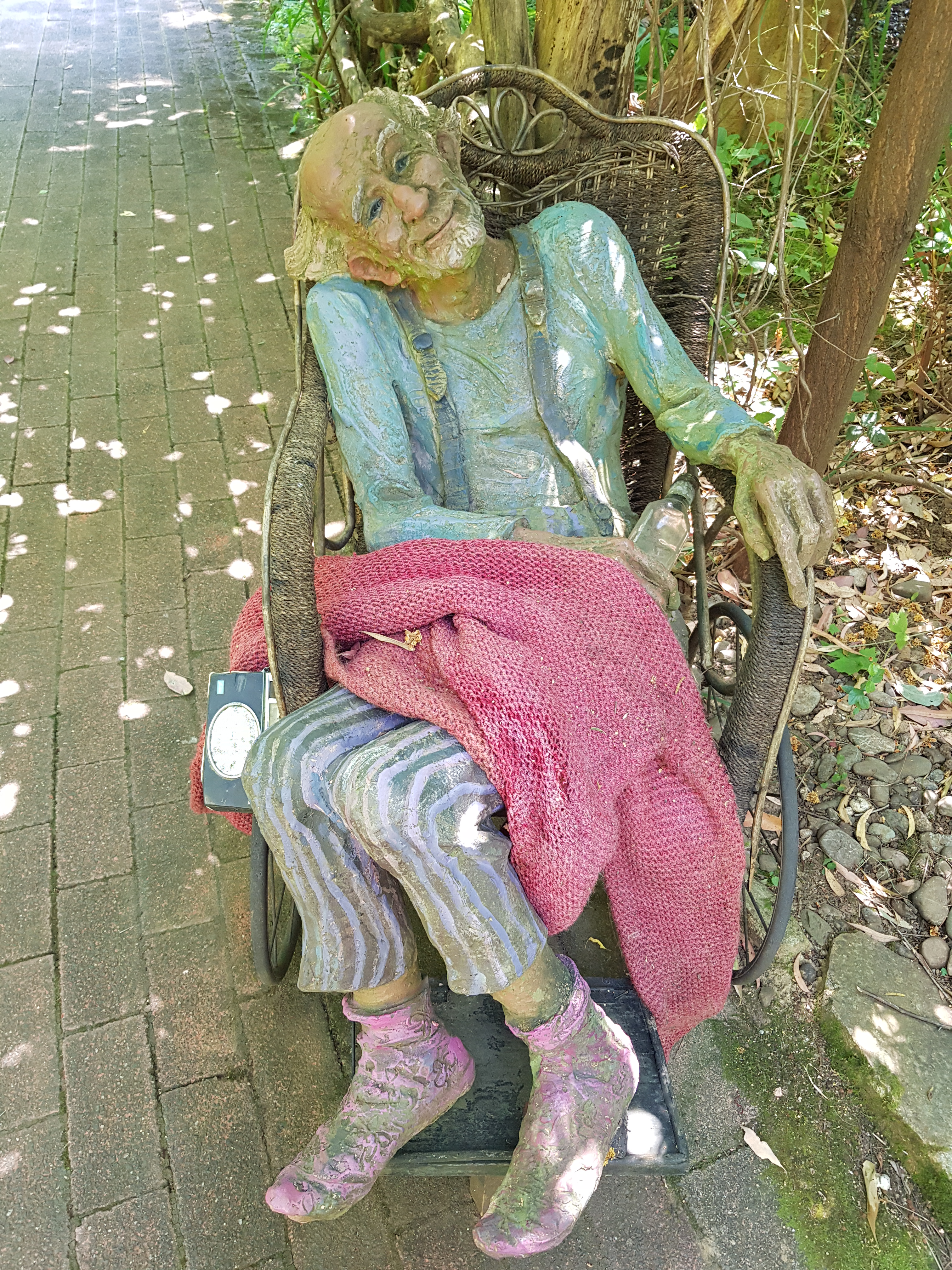 After Boxing Day, we headed north to see a place called Bruno’s Art and Sculpture Garden in Marysville. Marysville had been devastated by the Black Saturday fires 10 years earlier, but now was a beautiful lush town with new homes and buildings. The sculpture garden had also been burnt out, and there were photos of the before and after the restoration of many of the sculptures. We met with the artist who was welcoming people into his garden. There were at least 100 sculptures, and a little creek was bubbling through the property.