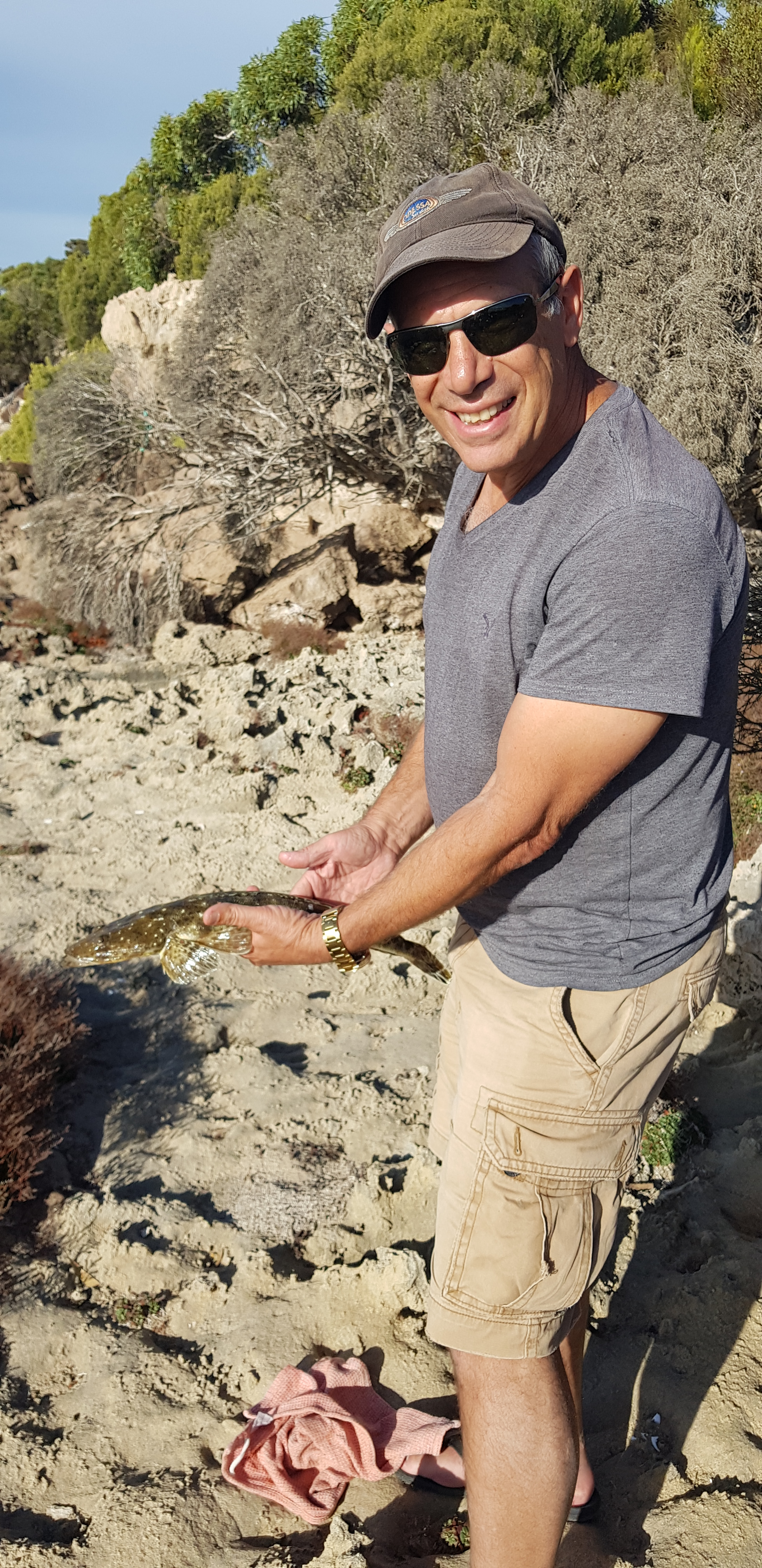 Speaking of fishing, Mark is one happy man, catching his first decent sized fish, a 40cm flathead, which we cooked up the same night. Fishing is a major pastime here, with every second car towing a boat and people of all ages toting rods to one fishing spot or another. We pass fish scaling tables frequently on our walks around the bay, as you can just throw in a line anywhere and more often than not you’ll catch something that you’ll need to clean before you go home.