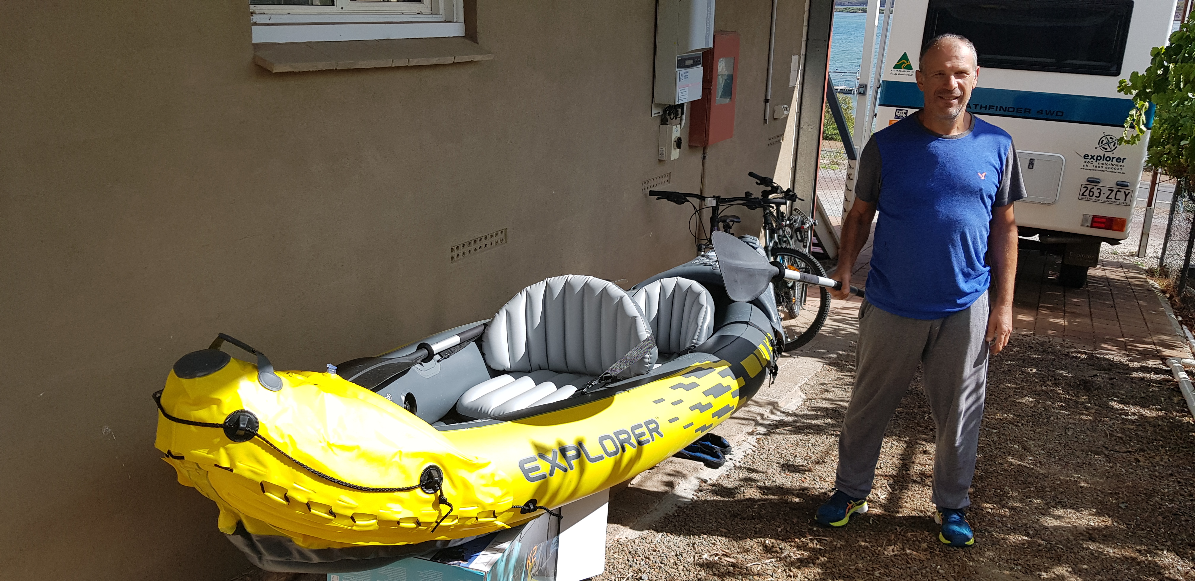 Isolation here isn’t hard with so few people around, and so many ways to get out and exercise. We go for walks along the foreshore on a walking track that extends for about 5-6 km in both directions from town, and use a picnic table as an exercise bench with a spectacular view. We can also bike ride into the national park, with our goal to make it to the Yangie Bay campground and back, a total of 36km up and down hills. I’ve only been able to make it to the Templetonia Lookout (26km round trip) before I conk out. We just took delivery of our new inflatable kayak and after our successful maiden voyage, will venture out to the other side of the bay and visit various spots for fishing.