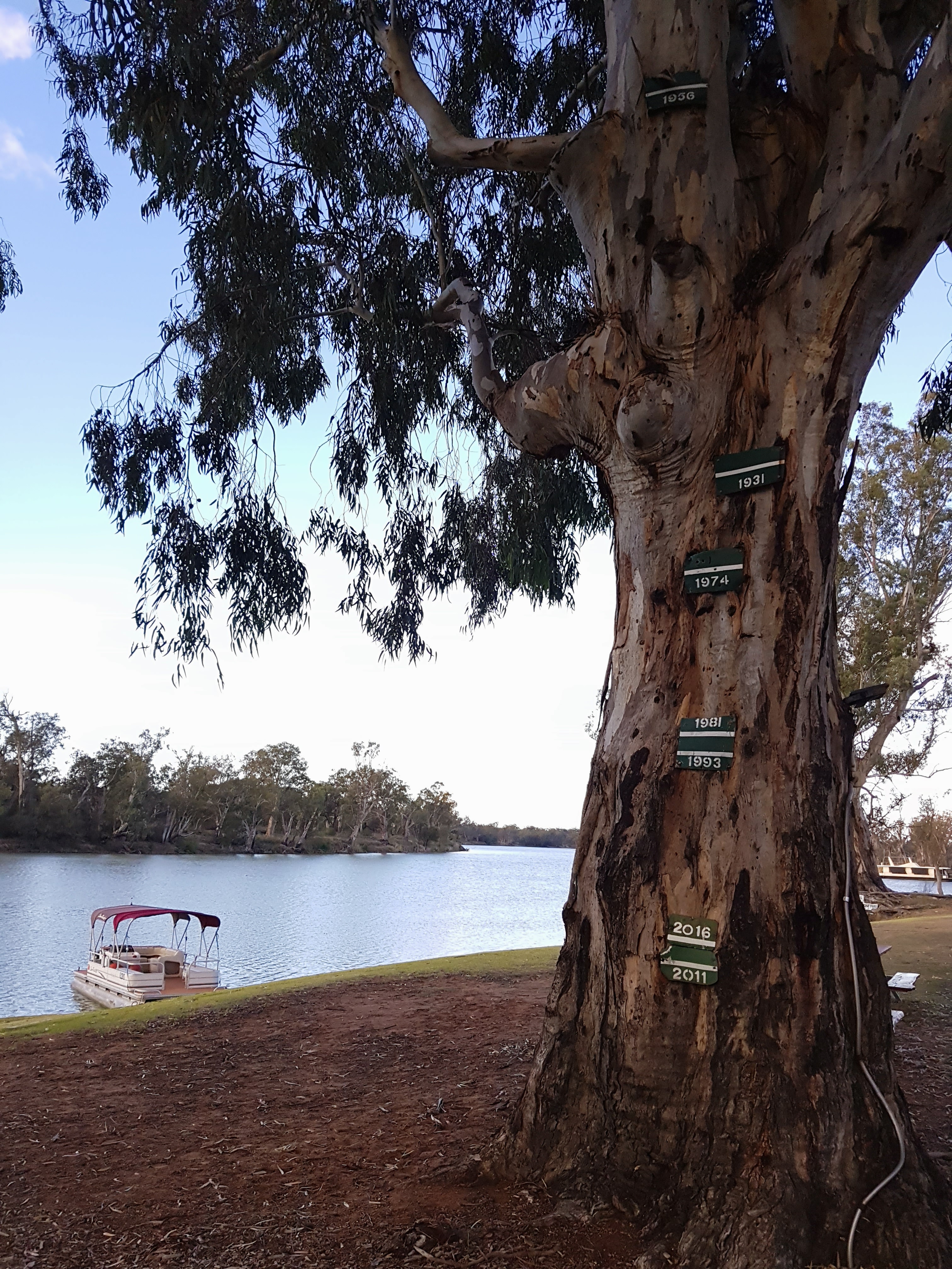 Next we decided to move on to Hogwash Bend, where there is a winery called Caudos within walking distance, making this one of our favourite spots on the river. We went for some wine tasting, and ended up with a mixed dozen and somehow squeezed them in. There’s a tree with markings of how high past floods of the Murray have risen, and that is pretty scary!
