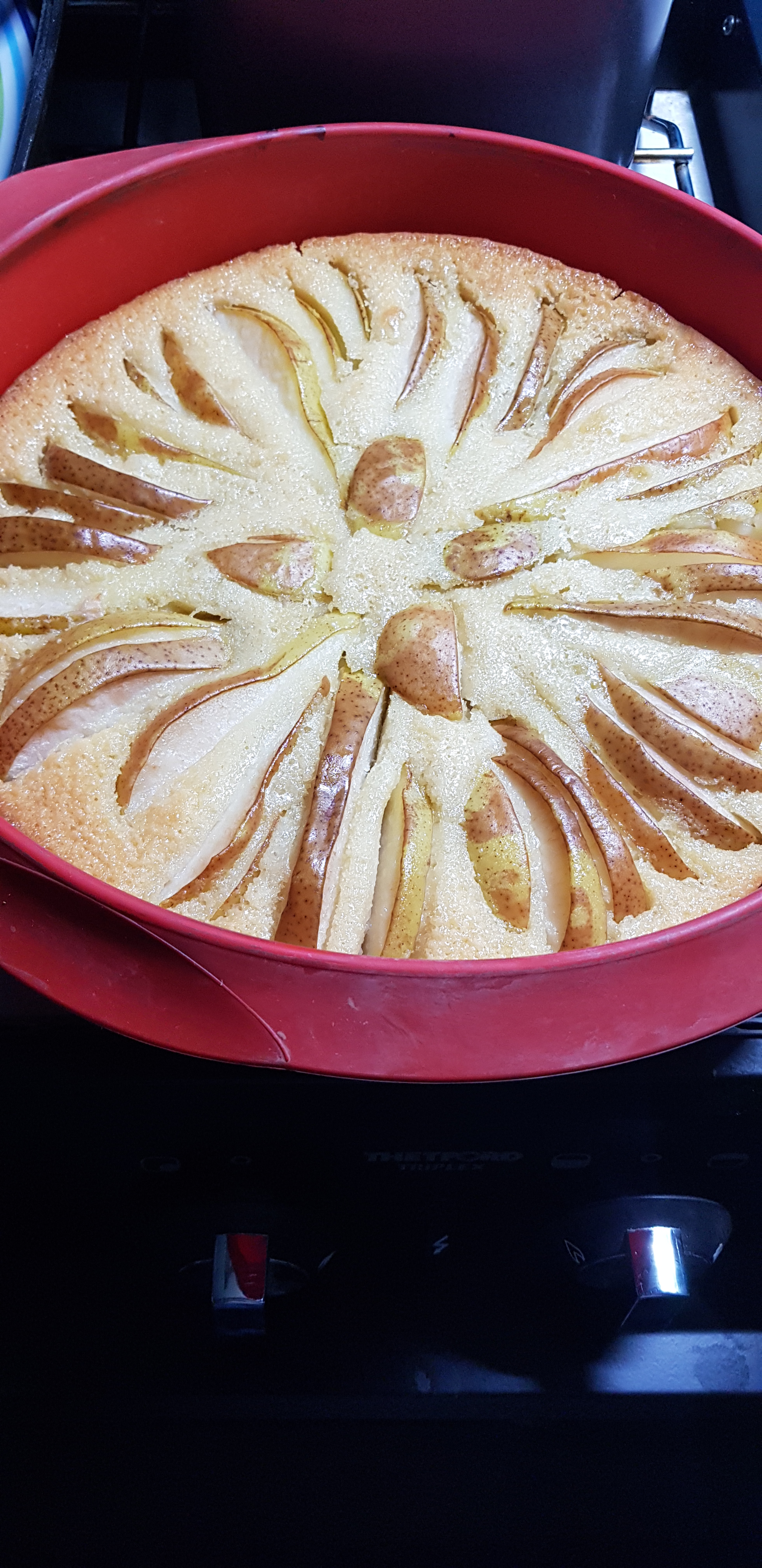 The rim walk was 3 hours of intense rock climbing both uphill and down, but so worth it. The highlight was the Garden of Eden about halfway, which had large pools of water. This is an indigenous sacred site, so no swimming but they do allow you to cool your face with water. Unfortunately both my camera battery and Mark’s, failed before this, having taken so many photos at Uluru and Kata Tjuta and not recharging. We’ll just have to come back one day and do it again to get the evidence! To compensate our readers, here’s a photo of the pear flan I made that night, and the recipe – 5 minutes preparation and into the oven!