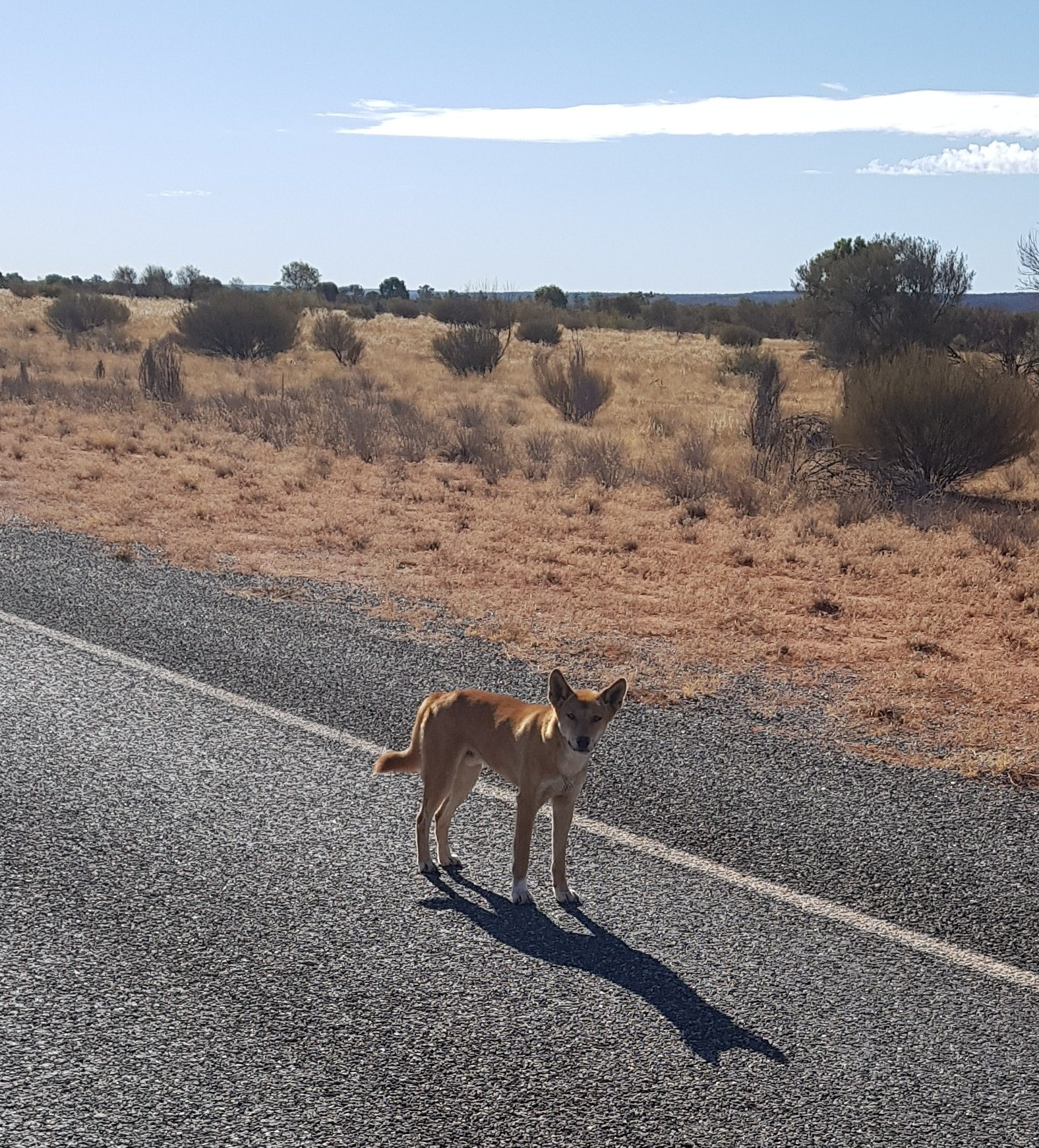 After leaving Uluru and Kata Tjuta, we were fortunate to see a wild dingo. Apparently they are often close to car parking and campsite areas, trying to steal food.