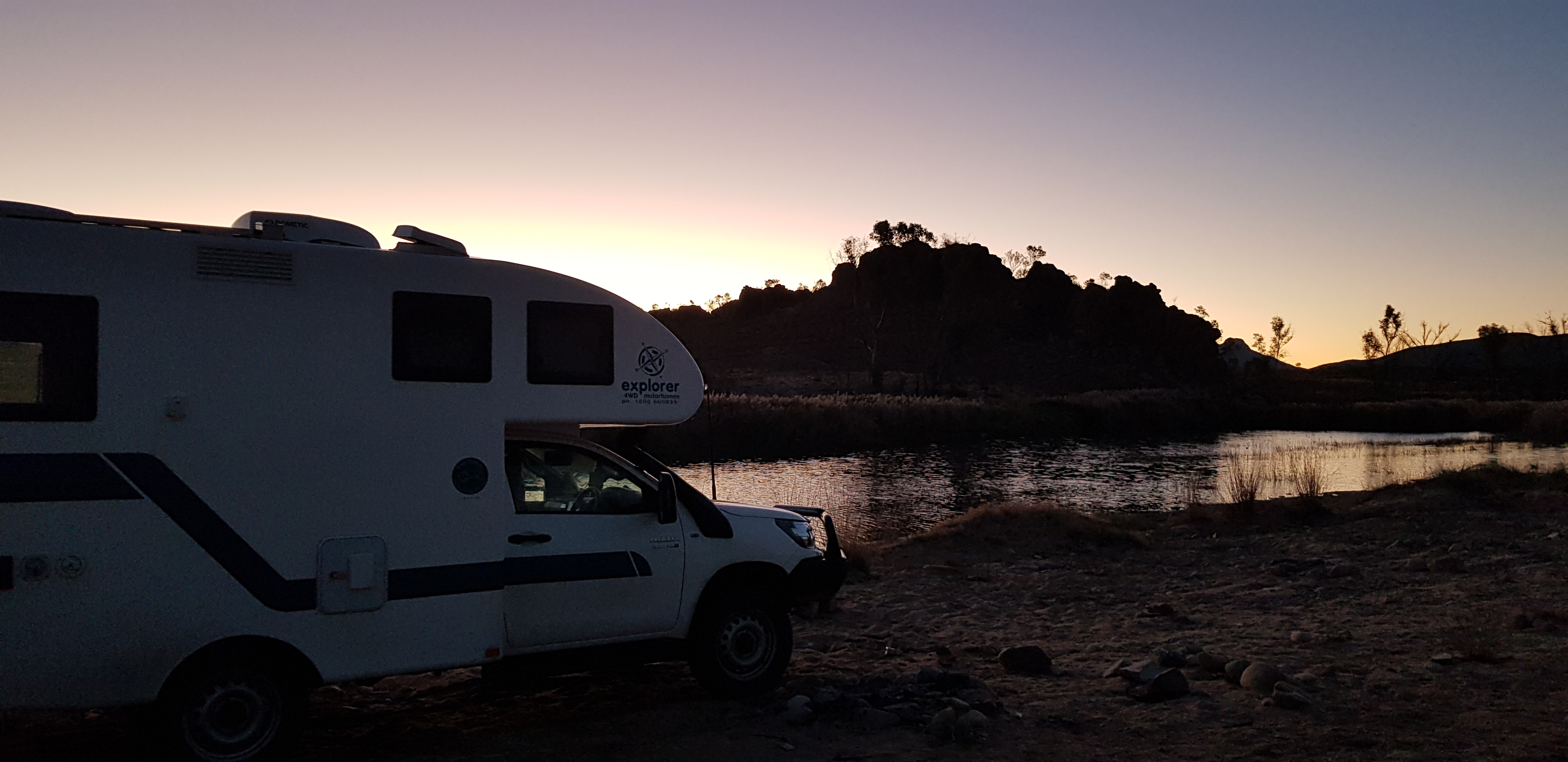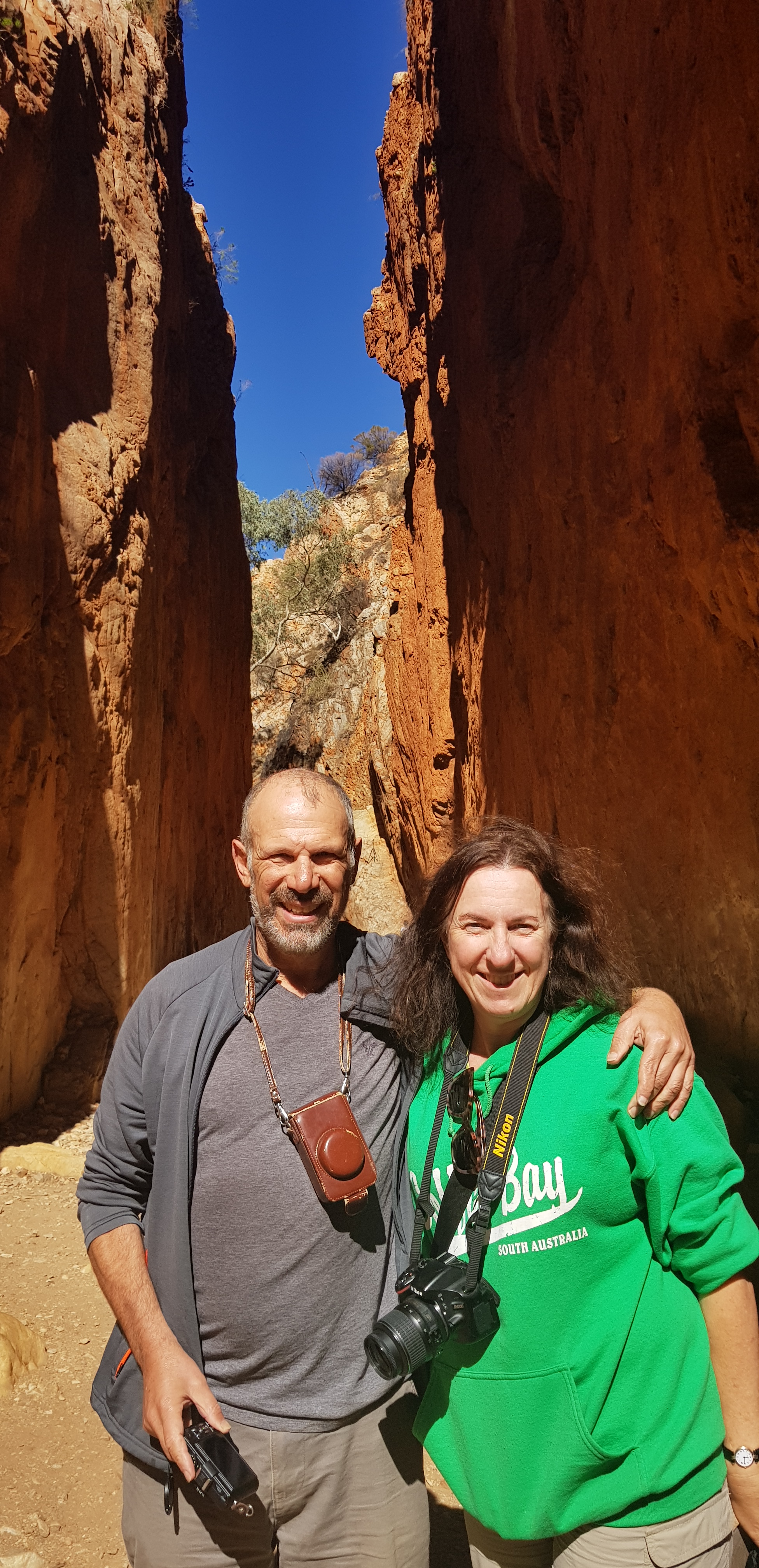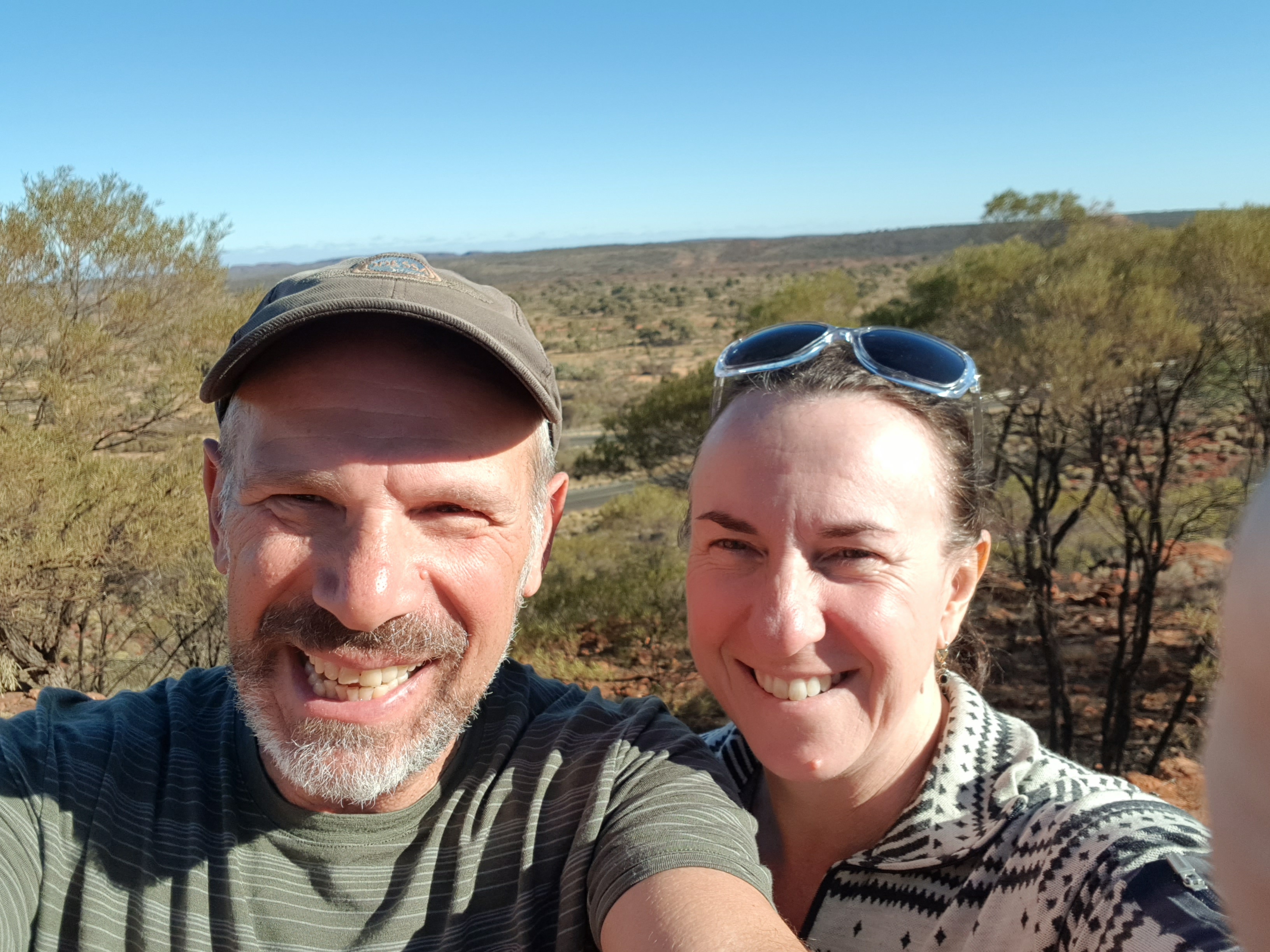 Ellery Creek Big Hole is usually very popular but had only a few visitors at the moment. Both the Standley Chasm and the Big Hole have campgrounds, but we decided to stay the night a bit further up the Namatjira Drive in a free camp called Neil Hargreaves Lookout, where there is a mobile hotspot set up. You place your phone on the cradle and the signal gets amplified enough to get 1 or 2 bars of 3G. So I called my brother Gary who was having his 50th birthday with the family and reminded everyone we are still alive.