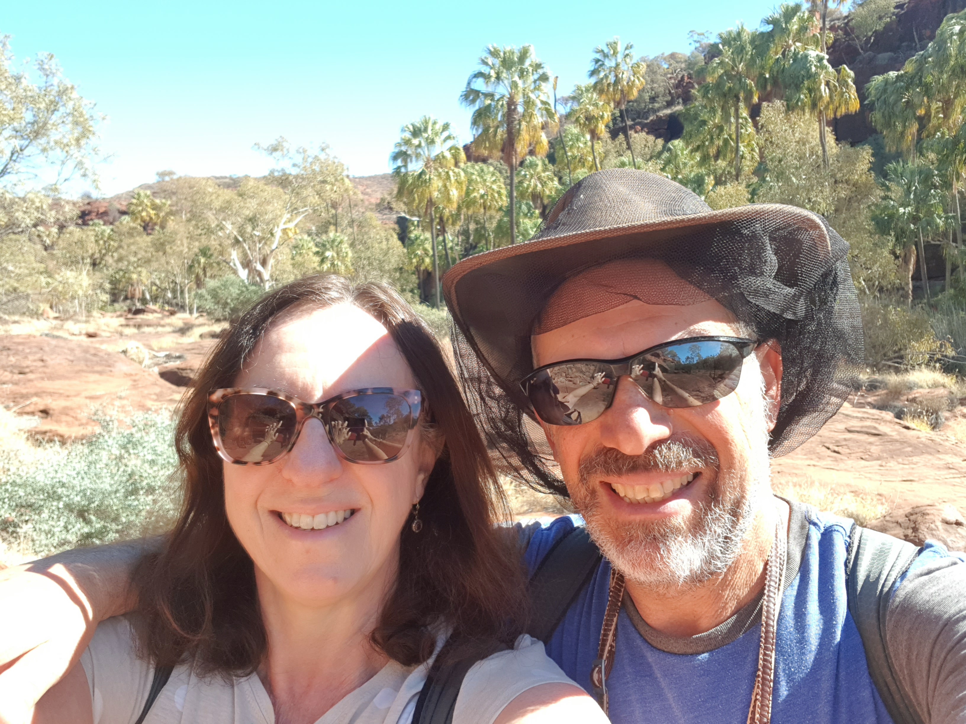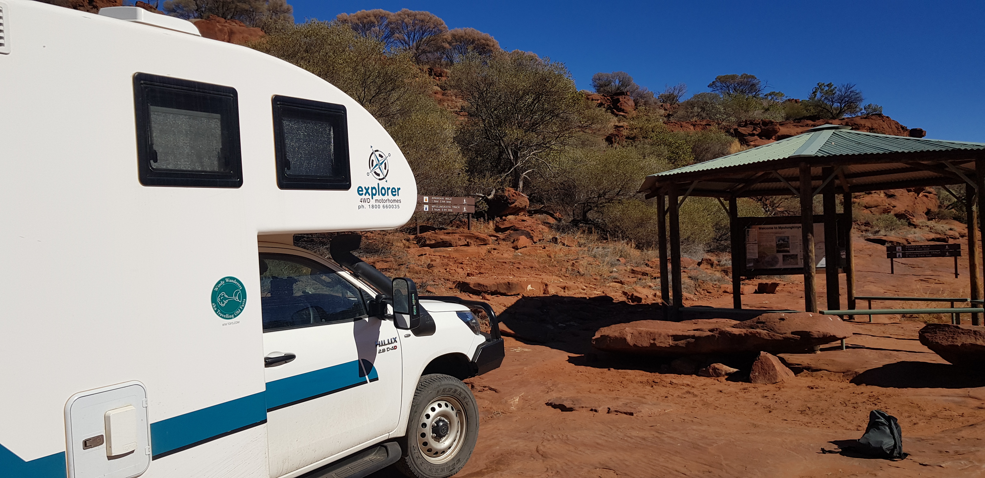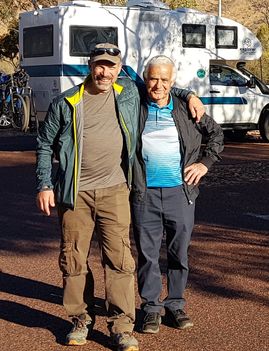 Ellery Creek Big Hole is usually very popular but had only a few visitors at the moment. Both the Standley Chasm and the Big Hole have campgrounds, but we decided to stay the night a bit further up the Namatjira Drive in a free camp called Neil Hargreaves Lookout, where there is a mobile hotspot set up. You place your phone on the cradle and the signal gets amplified enough to get 1 or 2 bars of 3G. So I called my brother Gary who was having his 50th birthday with the family and reminded everyone we are still alive.