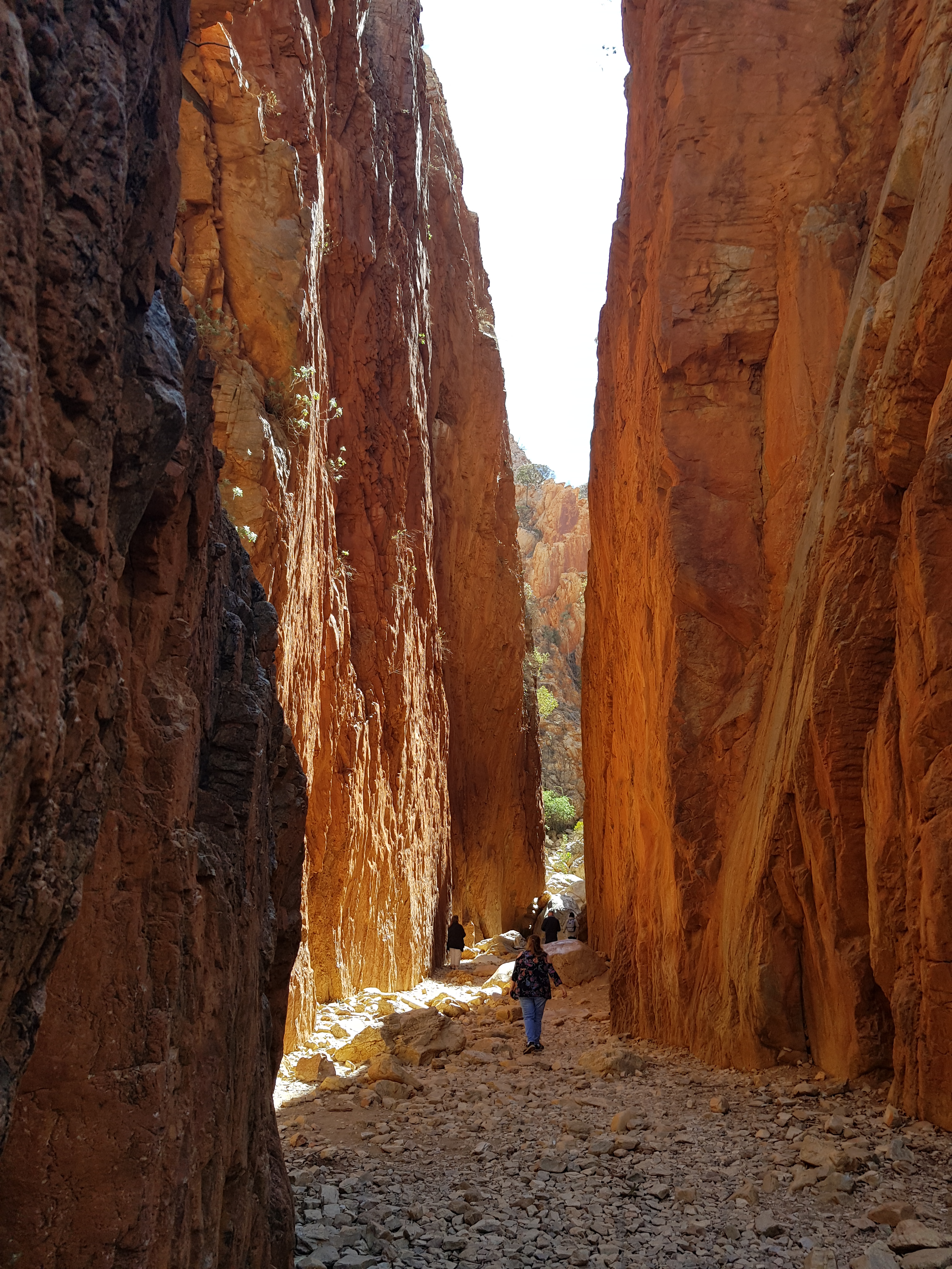 First stop on the West Macdonnell National Park trip, was Standley Chasm which should be viewed at midday to get the sun’s rays hitting both walls. The indigenous owners have a little café and gift shop at the entrance and maintain the 1.2km walk to the chasm.