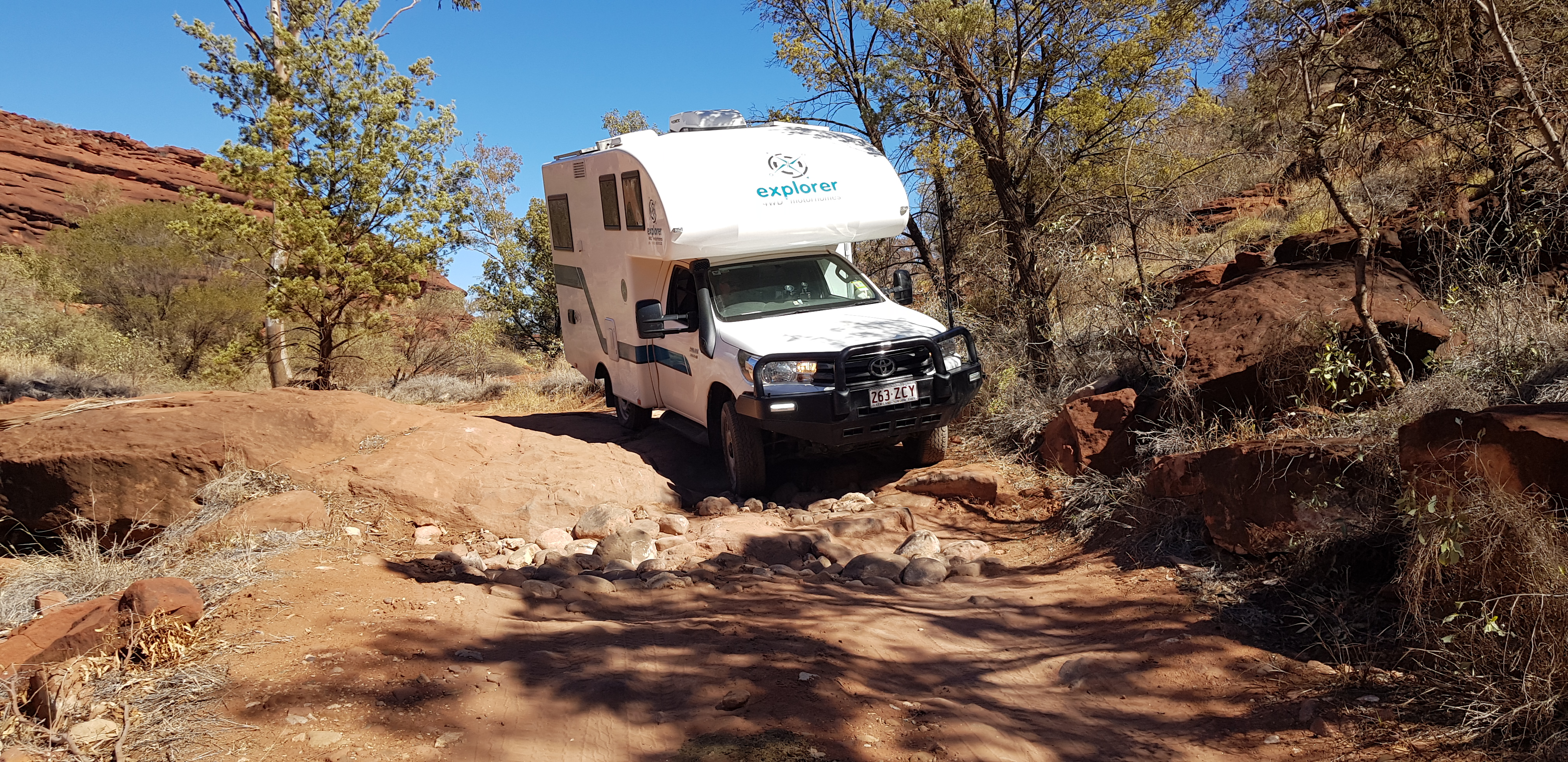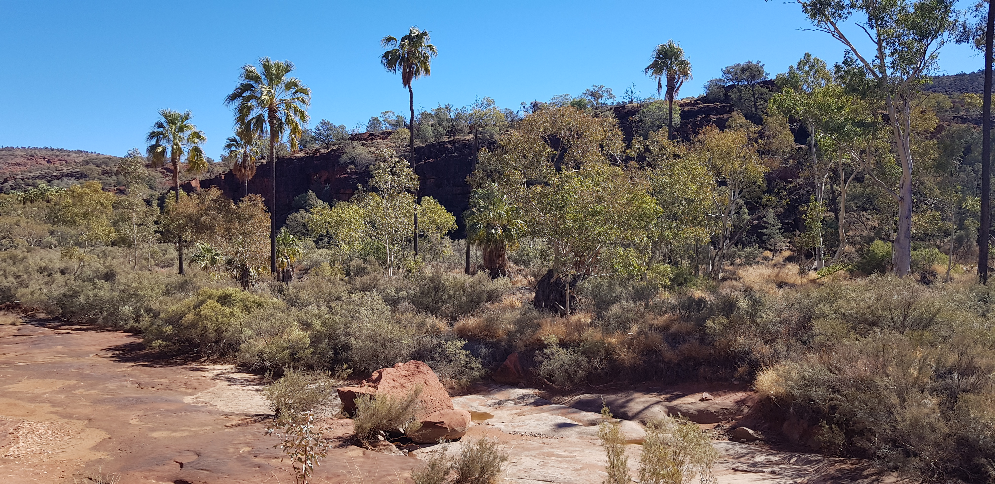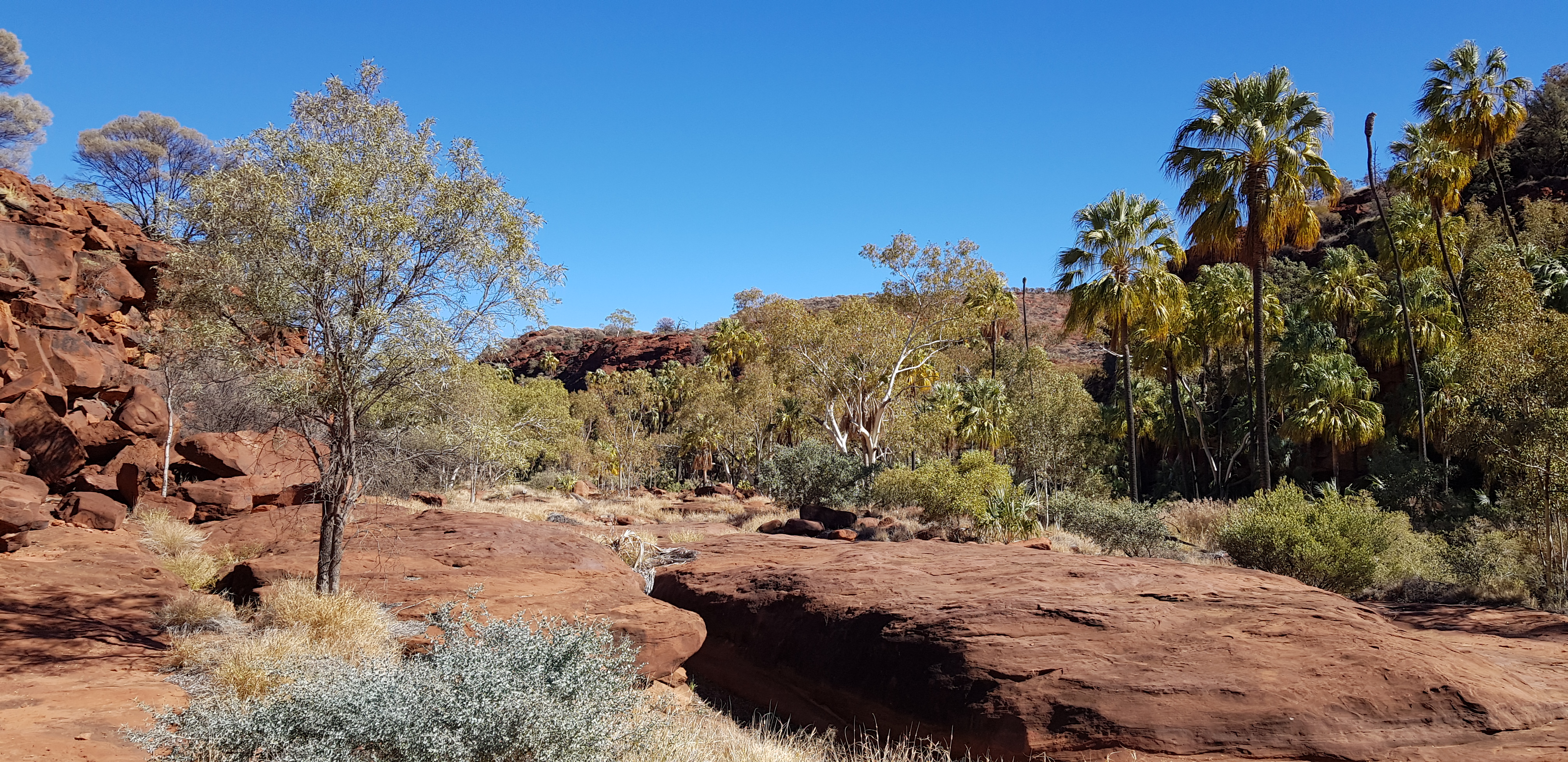 The next morning we decided to backtrack and go to the Finke Gorge National Park, which we had driven past the previous day because of the rough drive in and being ‘gorged’ out. But with a good night’s sleep and a fresh dose of adventurous spirit for breakfast, we thought we’d go back and give it a go, and so glad we did. It was probably the highlight of the West Macdonnell Ranges. The final 4km of track to the Palm Valley is a challenge but the Explorer did it easily. You’ll have to go to the Travelling Old Farts Facebook page to see the video https://www.facebook.com/wwtofs/videos/?ref=page_internal