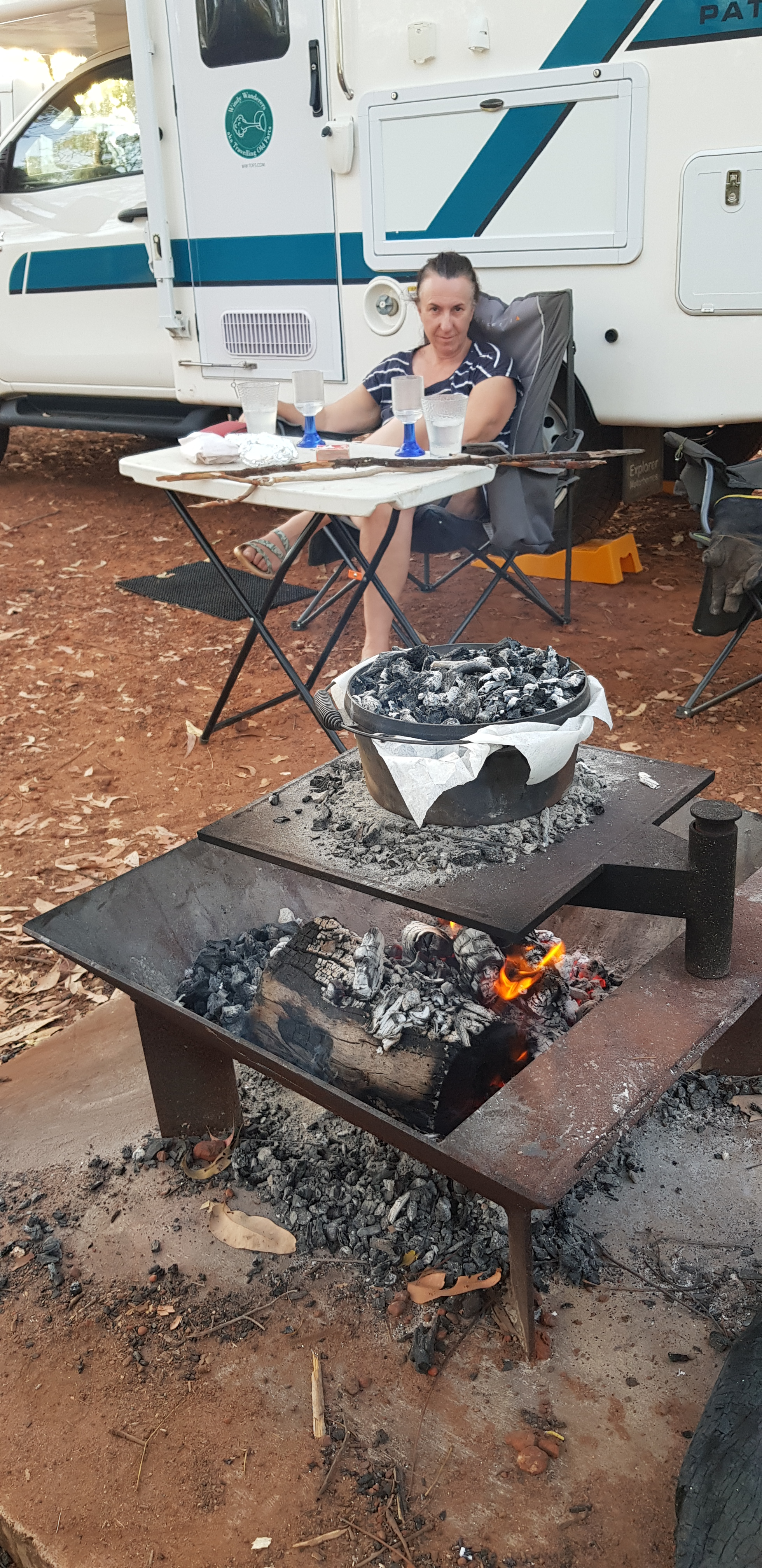 The main attractions in Litchfield NP though are the waterfalls and swimming pools. Yes more of them, but thank god because by now the temperatures were 32C and higher in the afternoons. People come down from Darwin 130km north, to visit the Florence Falls plunge pools, to cool down. I counted the 135 steep steps up to the Florence Falls campground from the pool several times while we were there. Somehow it helped to make the climb bearable, and I was reminded of being able to do a gym workout for free. Despite the heat, we had a campfire so Mark could make bread and I made banana bread with the overripe bananas we had to use.