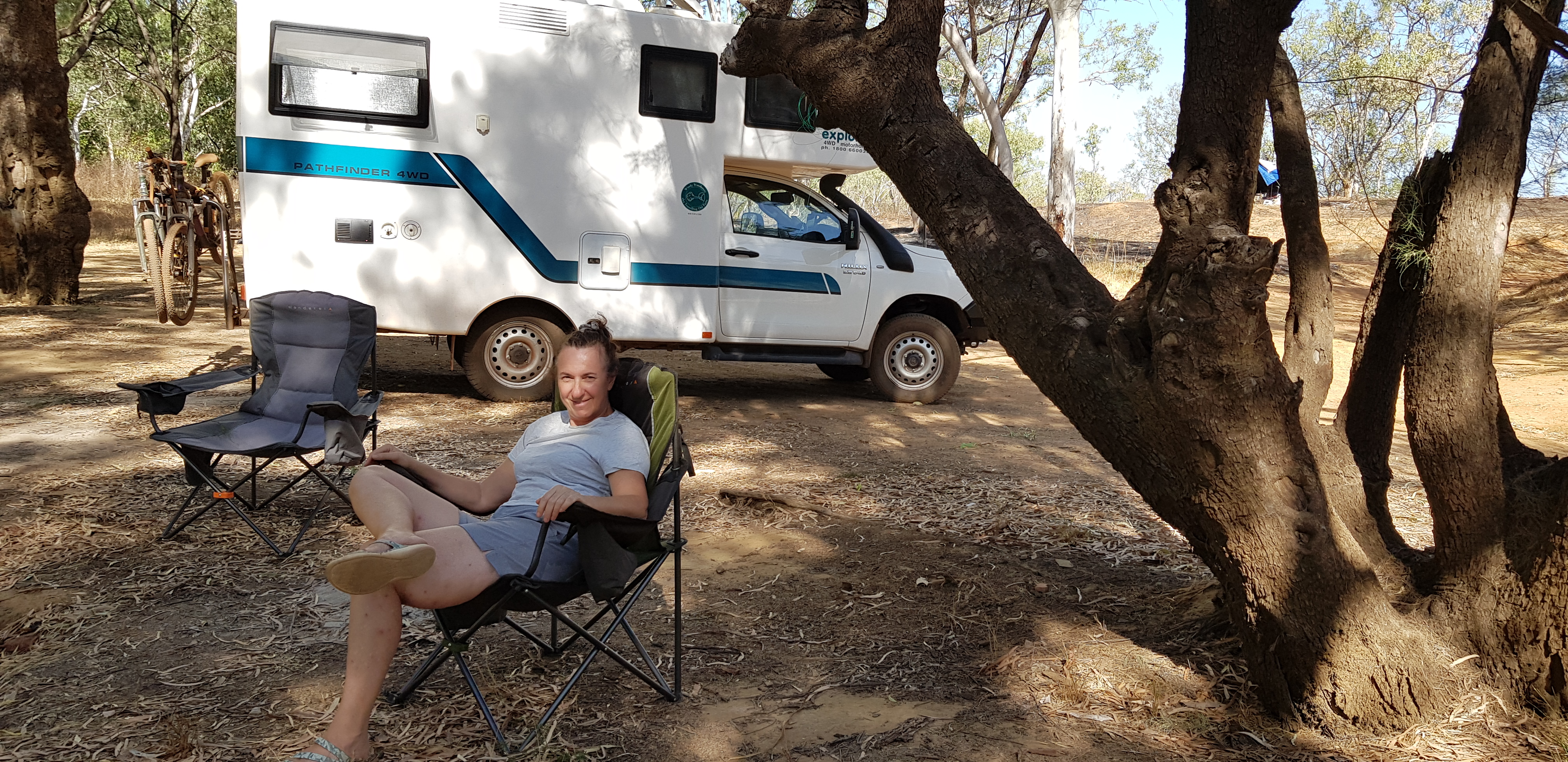 Our first campsite on our way around the Gulf of Carpentaria was at Old Roper Crossing. Its not on the Wikicamps app. A traveller at a rest area told us about it. It was magic. I’ve sent the site details to Wikicamps for the admin to add it, but on 2nd thought wish I hadn’t. Too many people here might ruin it. The Roper River runs over the weir, making a continuous waterfall sound, and spreading placidly through the eucalypt forest on the other side. A white heron has its favourite spot to sit, and two whistling kites are building a nest in the tree next to us. Some indigenous people came down to the river to have a wash at night, as did the lady traveller Lorraine who’s been here for 4 nights so far. She’s been travelling for 34 years, and is the 2nd one to tell us we shouldn’t be taking our vehicle through the Limmen National Park road because its too rough.