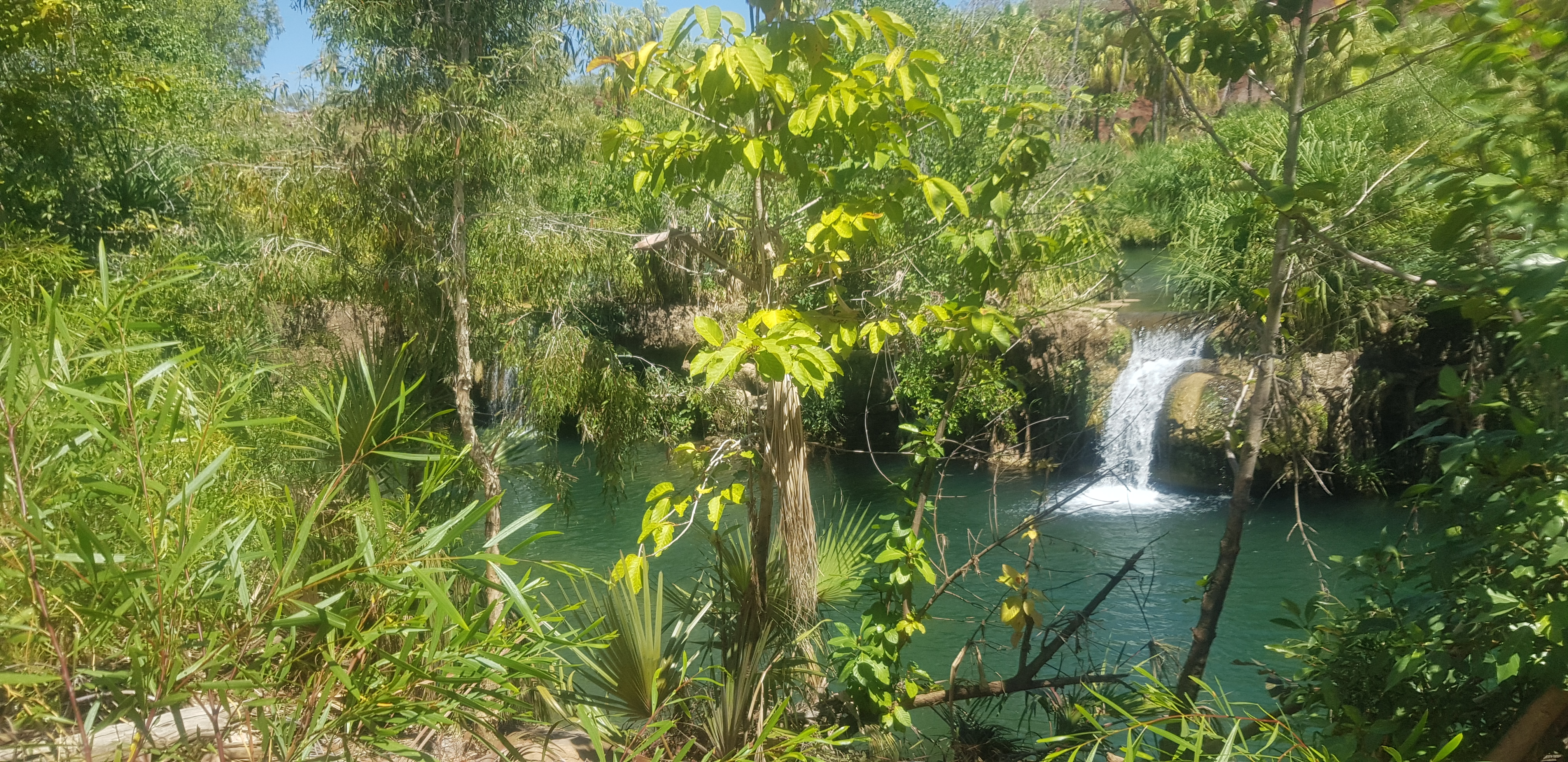 We enjoyed the warm spring pool near the bar, but the open air cold showers were actually welcome in the heat.