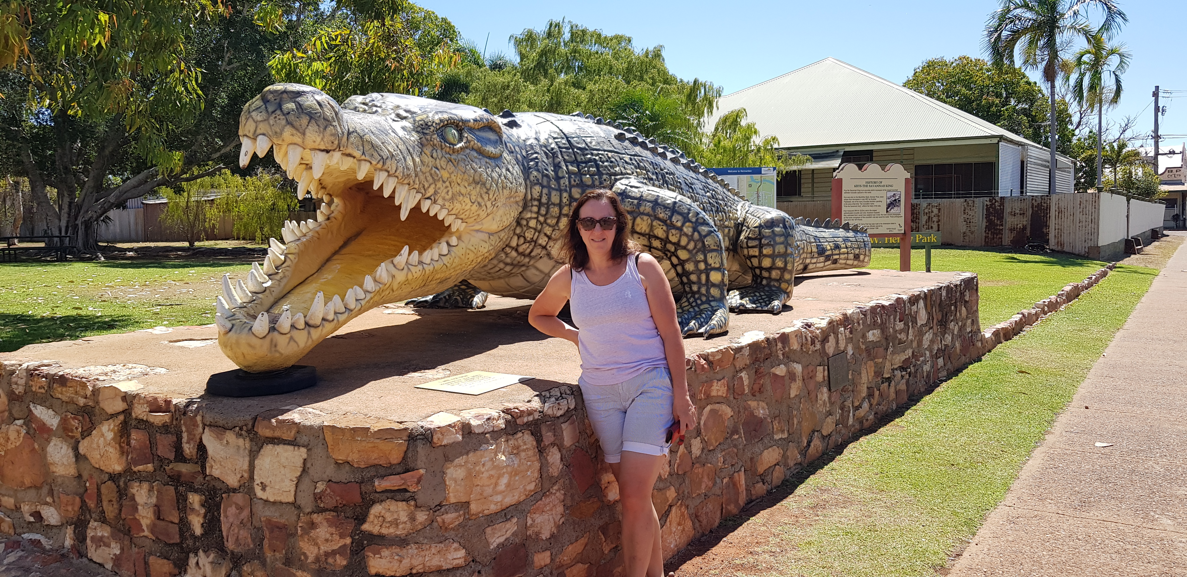 The Gulf Savannah roads pass close to the Gulf of Carpentaria, but you only get to see the gulf itself at Karumba. It’s a fishing town with boats large and small in everyone’s front yard. We didn’t stay because it was too windy and the caravan park was too full for our liking, but took some photos of the Gulf of Carpentaria water to prove we’ve seen them! Normanton is close by and has a replica of a crocodile that was shot by a woman in 1959. The croc named Krys after the woman, was 8.6 metres long, a world record.