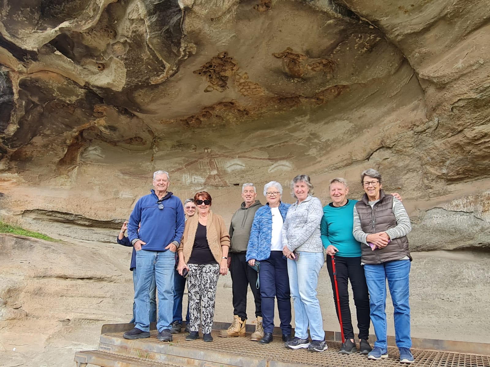 Next day, we stopped in at the Baiame indigenous rock art cave on a private property in Milbrodale. After an initial wrong turn by our fearless leader Tony, we eventually got there.