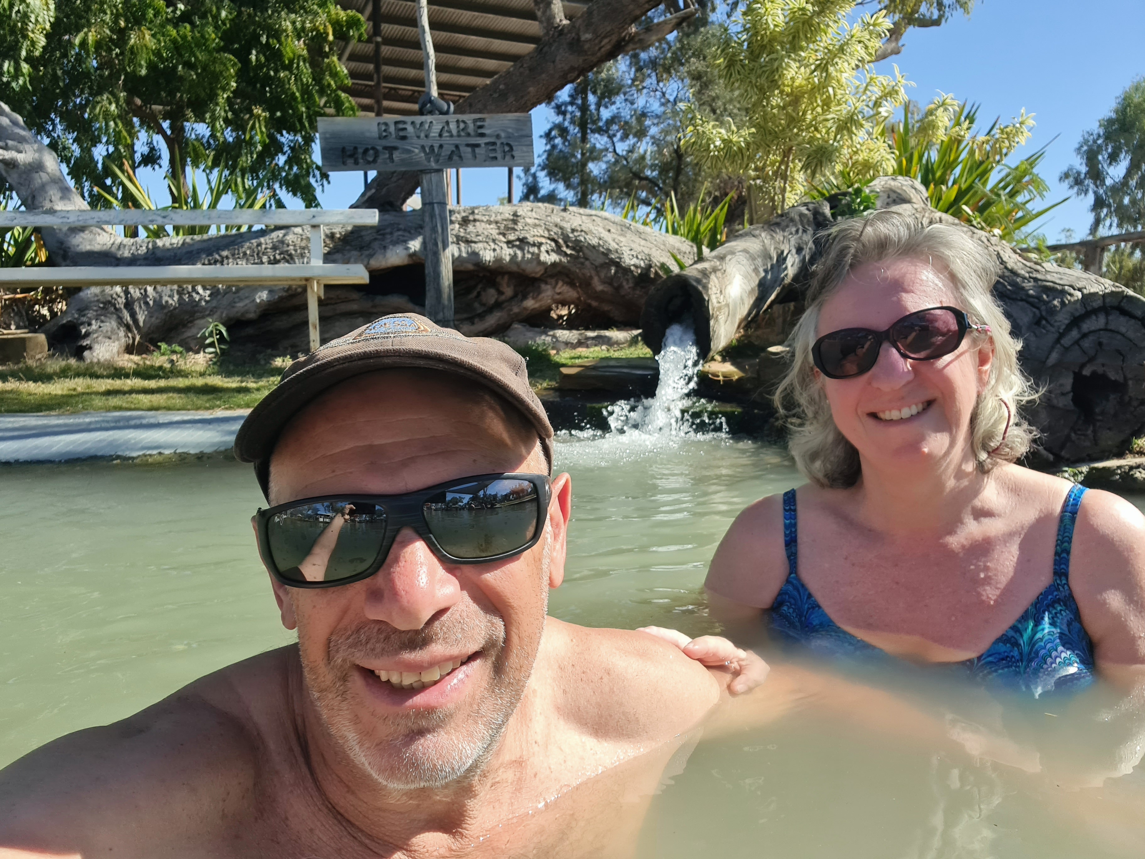 We made a detour to the Lara Station and Wetlands when I saw the billboard on the road to Barcaldine, having heard of it before. It’s the end of the QLD school holidays, so Saturday night was full when they had a country singer and a lamb stew cooked over a campfire for everyone. Many of the caravans left the next morning, so we moved to a spot closer to the wetlands and we could check out the birdlife. There’s also a natural artesian hot pool here – another reason we couldn’t resist.